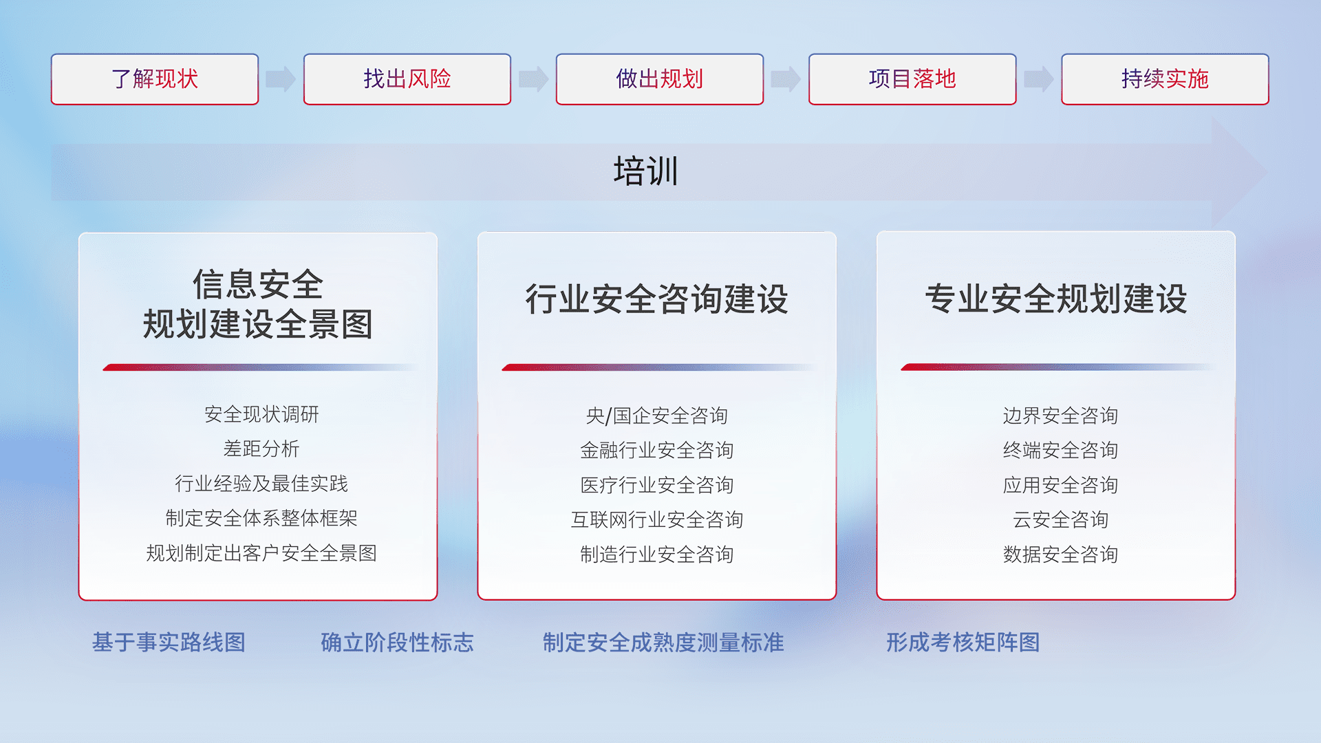 针对客户行业特性,,,将宏观的安全战略和需求,,,,通过专业的交付服务,,实现项目落地,,为客户提供标准规范的集成交付服务。。。